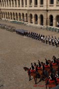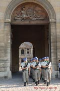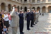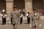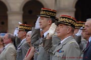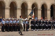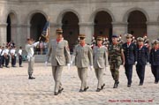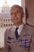 Le Général d'Armée Marcel Valentin, Gouverneur Militaire de Paris, vient de faire, au lendemain de son dernier défilé du 14 juillet, ses adieux aux armes. Le 5 e Génie souhaite une retraite bien méritée à celui qui fut pendant plus de 3 années le « patron » des unités de l'Armée de Terre basée en Ile de France, mais également des autres armes placées sous son autorité de zone de défense. Au lendemain de la remontée en puissance du plan Vigipirate, c'est en effet, la charge du GMP que d'assurer, la mise à disposition des troupes militaires qui assureront aux cotés des forces de l'ordre et du Préfet de Police la sécurité de nos concitoyens et des bâtiments sensibles. Ce rôle de chef de guerre, le général Valentin le connaît bien, pour avoir été l'un des artisans du retour de la paix dans les Balkans. Ce saint-cyrien, issu d'une lignée d'officiers, élevé dans la crainte d'un bloc de l'Est menaçant, fera une brillante carrière dans les Hussards parachutistes dont il sera le chef de corps à Tarbes, avant d'accéder aux étoiles. Celles-ci le mèneront en 1993 à un début de carrière internationale et médiatique, durant les heures sombres du siège du Sarajevo, où juché sur un char, son discours sera relayé par les médias du monde entier. En Macédoine en 98/99, il aura la responsabilité de la bataille de la paix au Kosovo, dont il sera le premier général français à commander la force multinationale de la KFOR. Bataille humaine avec la toujours lourde décision d'envoyer des hommes à la mort, comme ce légionnaire qu'il a vu mourir sur la table d'opération et qu'il l'a profondément marqué. C'est ensuite en novembre 2002 le changement, avec le poste éminemment politique et représentatif qu'est celui de Gouverneur Militaire de Paris. Pas une cérémonie officielle sur la capitale, en présence des hautes autorités de l'état, ne peux lui échapper. Ni même les nombreuses commémorations historiques de la ville en présence des élus n'ont de secret. Quant aux défilés du 14 juillet, il en est le principal artisan, veillant avec soin aux nombreux préparatifs, et surveillant celui-ci, le jour J, depuis son command-car, face à la tribune présidentielle, avant d'aller à l'issue rendre les honneurs au chef de l'état et clôturant par la même la cérémonie. |