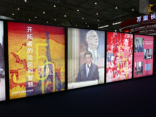 Exposition Photo en Chine. 4 photos du président chinois présentées dans l'exposition du cinquantenaire à la foire internationale de Chengdu. Publication dans Téléstar et TV câble hebdo (Luc Arbogast) |