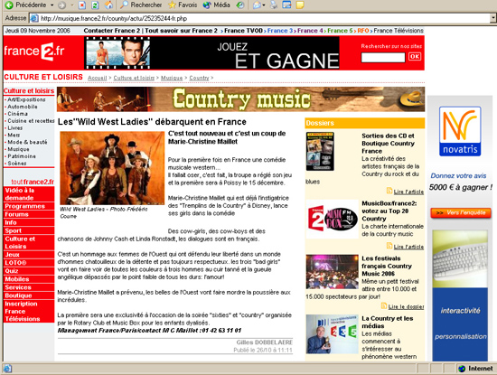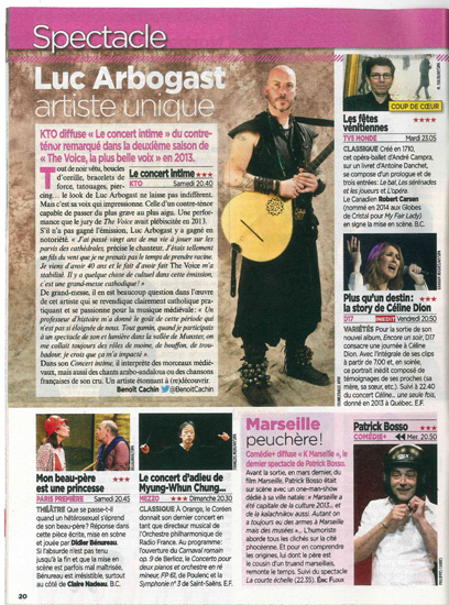 Autres parutions diverses dans Télérama, le nouvel obs, jeune & Jolie, Nice Matin, Télé Loisir, Télé Poche, Cable Hebdo (couverture) Notre temps, Bilto, Voici, la vie, la croix, femme d'aujourd'hui,Glamour, Corse matin, République des pyrénées, Nord Eclair, Gazette de Monaco,Télé Z. Magazines de musique belges, allemands (dont une couverture), suisse, hollandais, japonais, anglais;